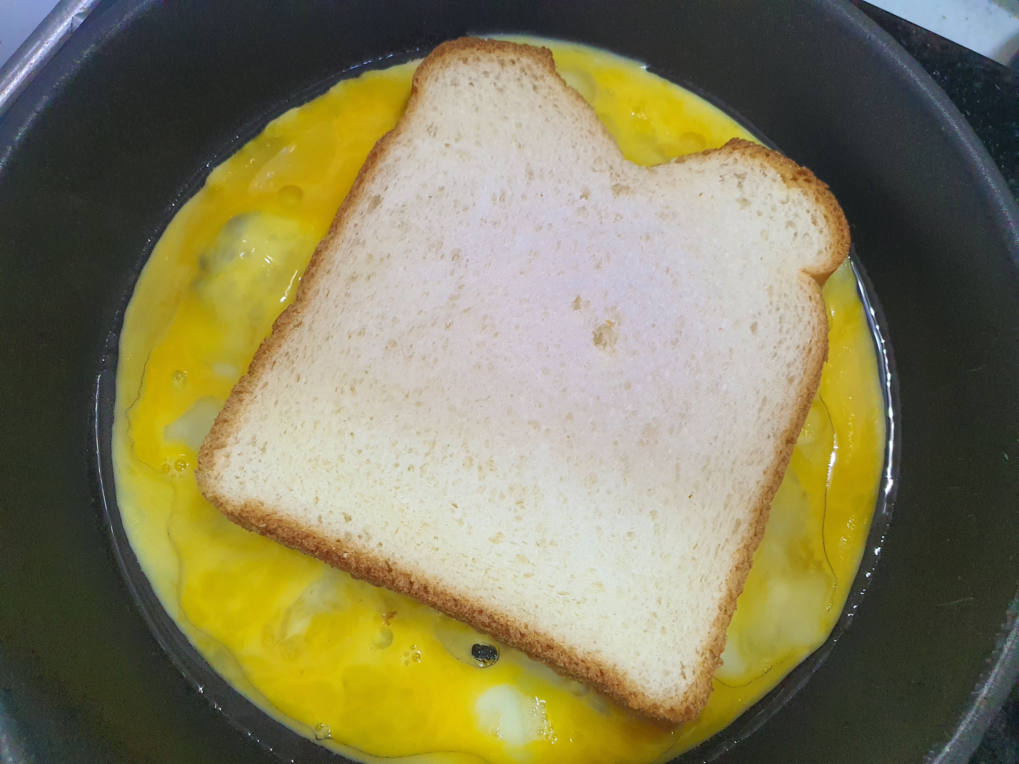 3. 계-란이 익기전에 빵을 올려줍니다-