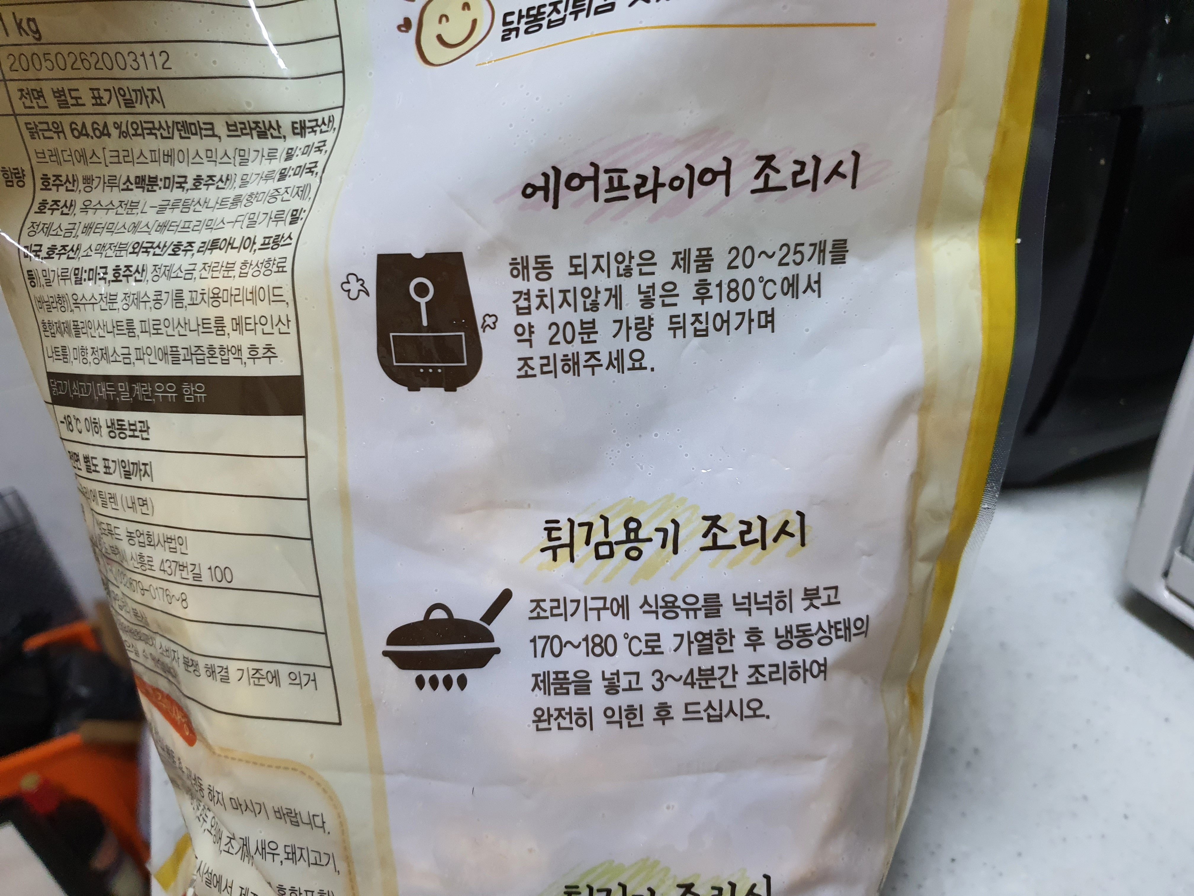 상도 닭똥집 튀김 봉지뒷면에는 조리방법도 적혀있어요-